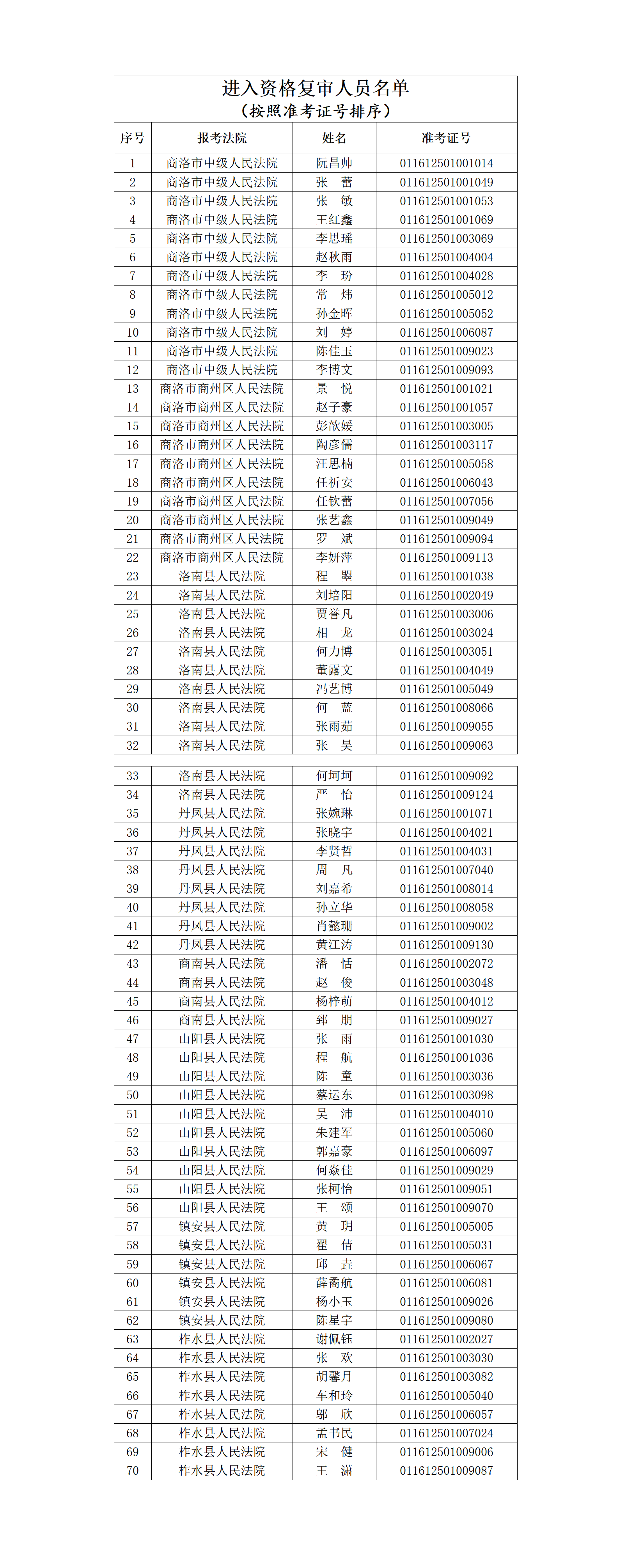 參加資格復(fù)審人員以所報考法院的考生綜合成績排名及招聘計劃2倍的比例,由高到低確定(進入資格復(fù)審人員名單詳見附件)。